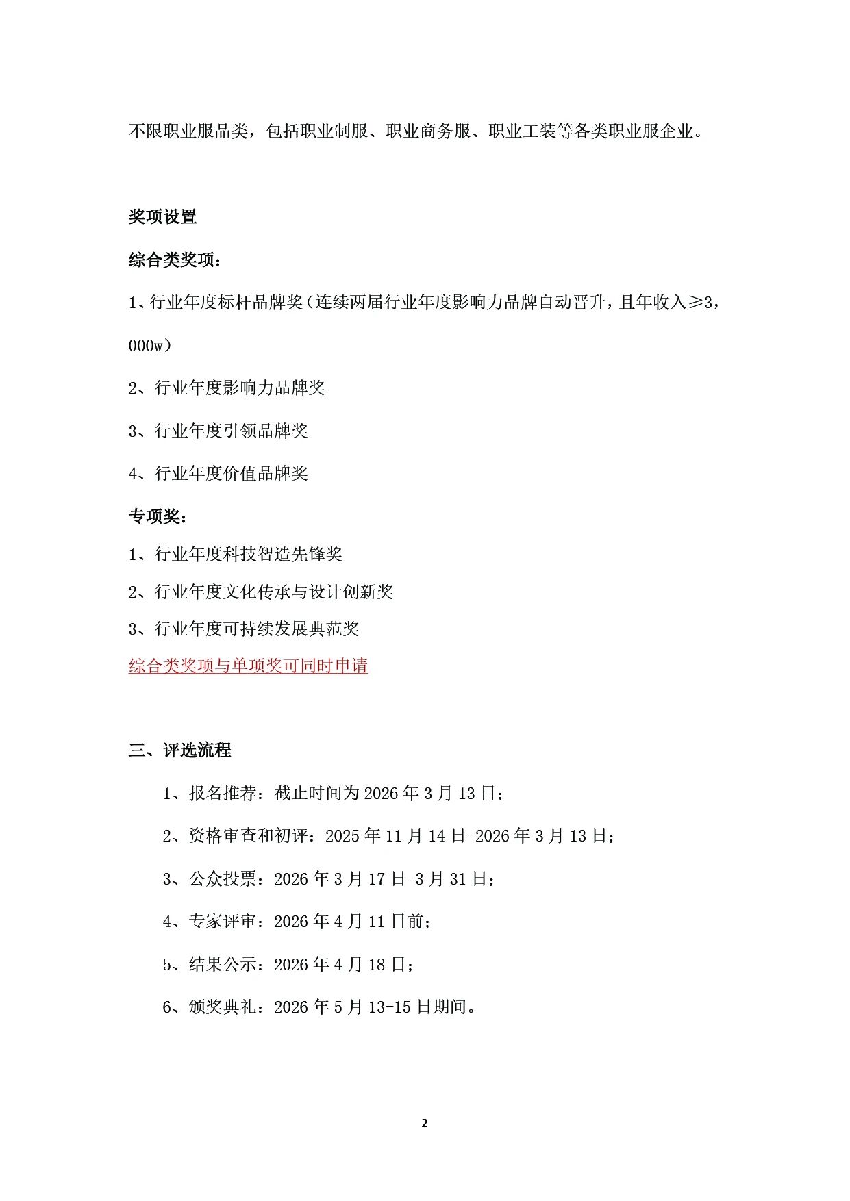 2、本次评选的入围品牌不做不同品类之间的横向比较。参选品牌所属行业不限职业服品类,包括职业制服、职业商务服、职业工装等各类职业服企业。